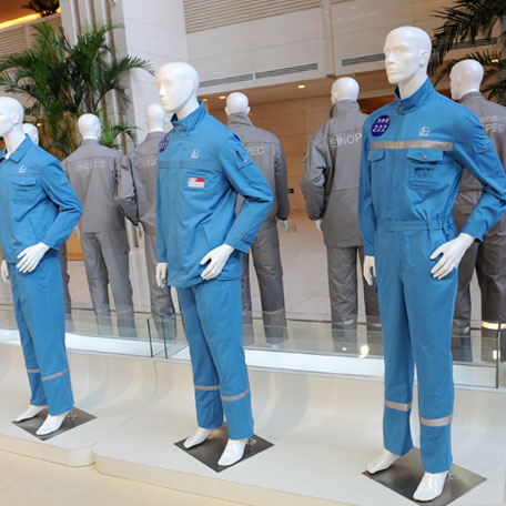 勞保服裝的主體顏色應(yīng)區(qū)別于作業(yè)場所背景色,不得影響各種色光信號的正確判斷。因此, 1、油田板塊有國旗紅和橘紅色兩種,其中橘紅色用于海上作業(yè)。 2、煉化板塊采用煉化藍。 3、銷售板塊有藍色和紅黑色兩種顏色,日前樣衣正在試穿,顏色待定。 4、工程建設(shè)板塊有煙灰色和湖藍色兩種,企業(yè)自行選擇其中一色。44,42,45,76,92,94,39,121,122